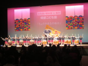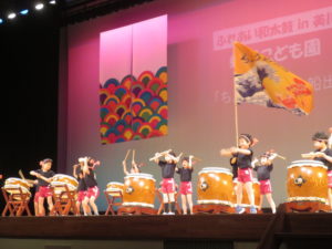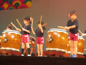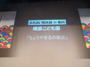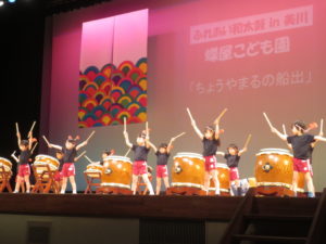 11月9日(日)美川文化会館アクアにて「ふれあい和太鼓㏌美川」が行われ、蝶屋こども園年長児(ぶどう組)が出演し、太鼓演奏「ちょうや丸の船出」を発表しました。