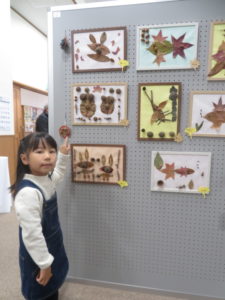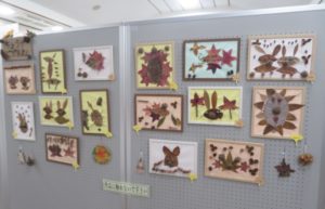 R7年11月1日、2日は第20回蝶屋文化祭がおこなわれました。その中で、ばなな組が自然物を使った作品を展示しました。集めた葉っぱや木の実を使い動物や魚などを思い浮かべながら貼り付け、素敵な作品となっていましたね。
